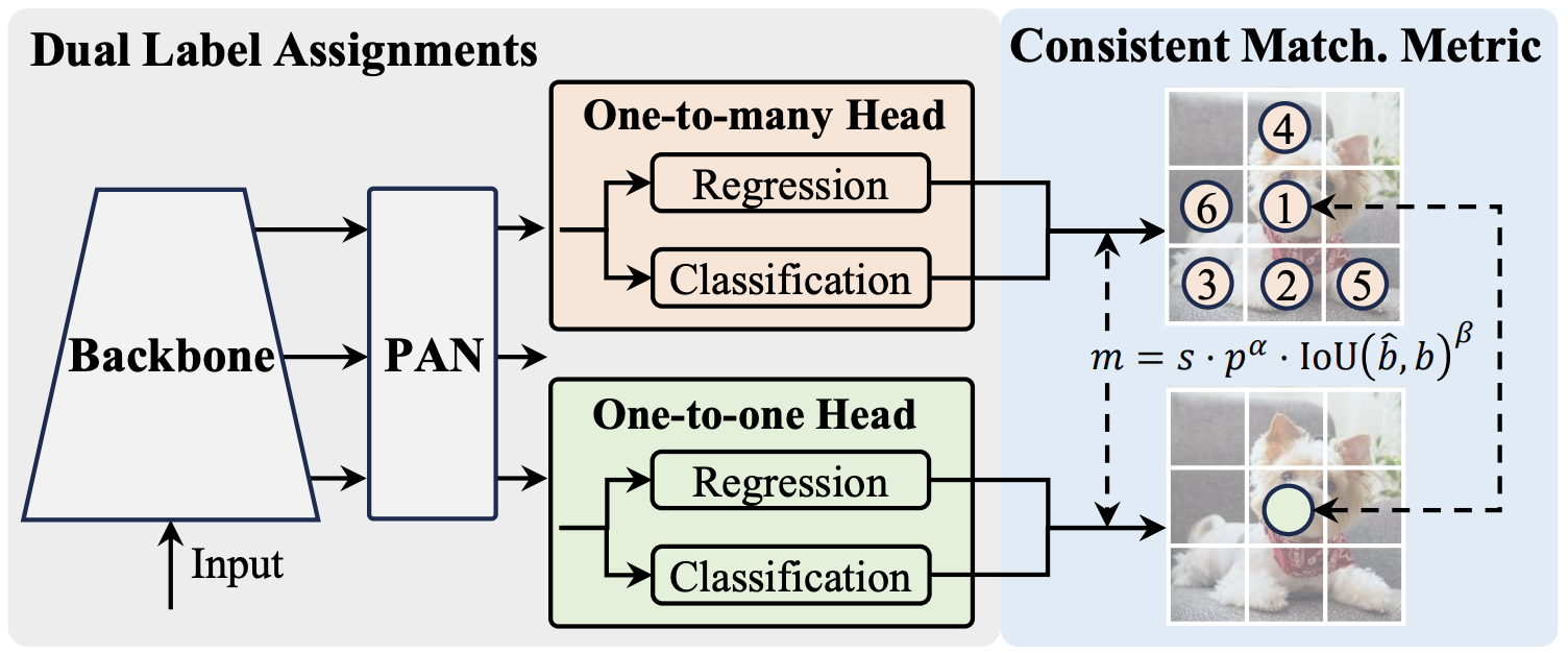 위는 기존 YOLO 모델과 유사하나, YOLOv10 모델의 핵심은 두 개의 Head를 가진 구조입니다.
